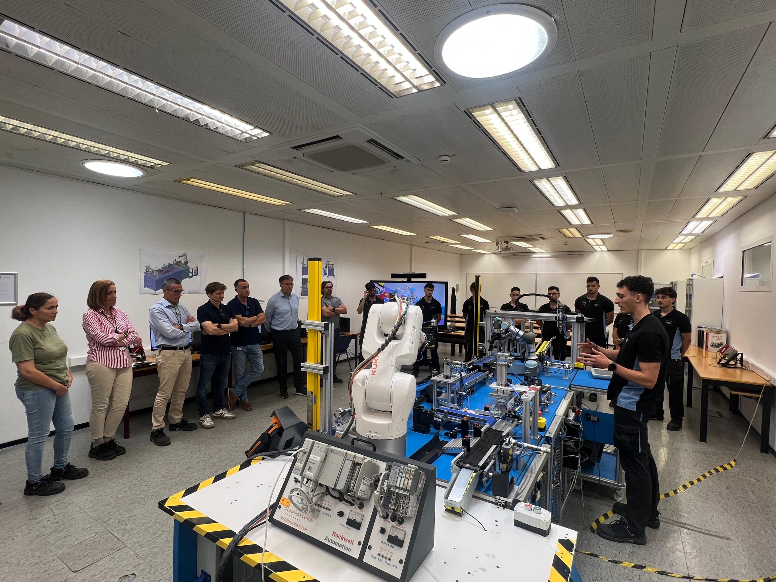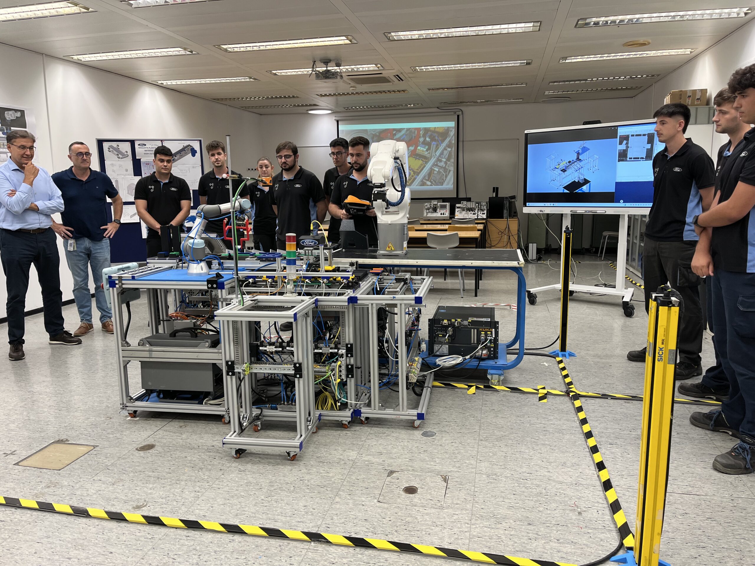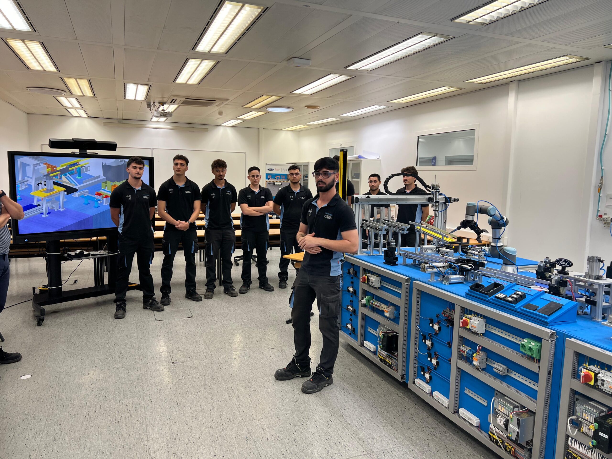 Ayer, jueves 3 de julio, los alumnos de segundo curso del ciclo formativo de Grado Superior en Mecatrónica Industrial tuvieron la oportunidad de presentar sus proyectos finales ante la gerencia de Ford Almussafes. La jornada tuvo lugar en el Centro de Formación Profesional Ford España y supuso un cierre muy especial a la formación de estos estudiantes, que durante dos años se han preparado intensamente para este momento.